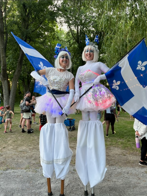 Un événement pour la fête de la Saint-Jean-Baptiste mémorable !Découvrez ce duo haut en couleur : un personnage en échasse …