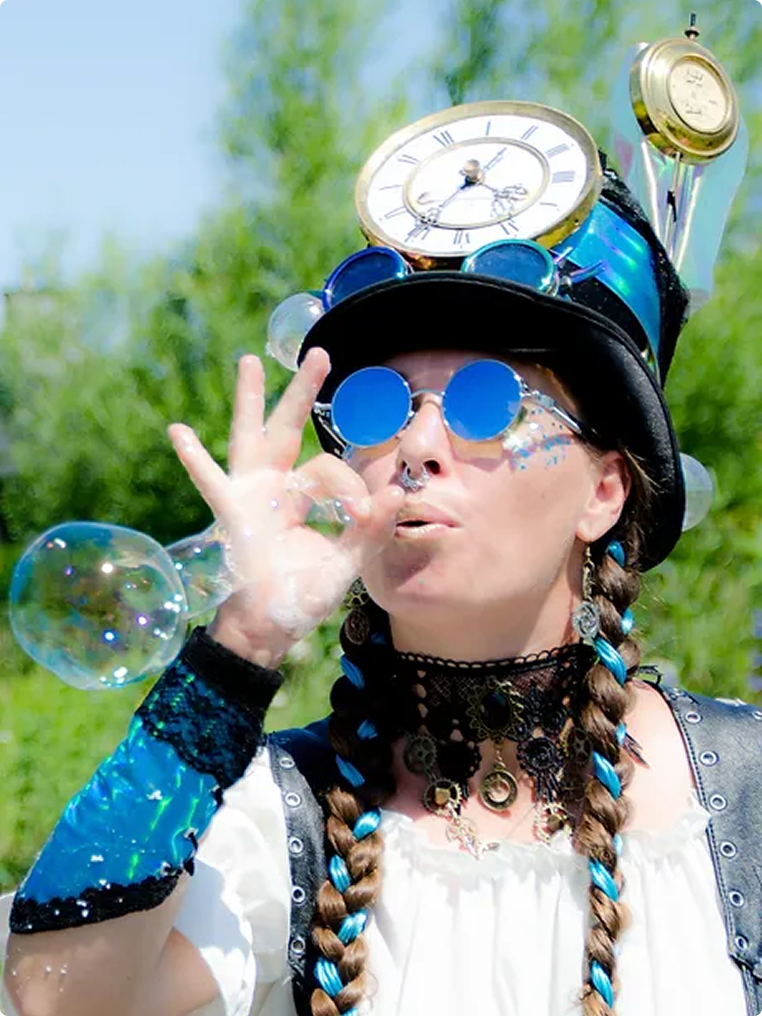 Spectacle express de 5 à 15 minutes, idéal pour lancer un événement ou capter l’attention de la foule.