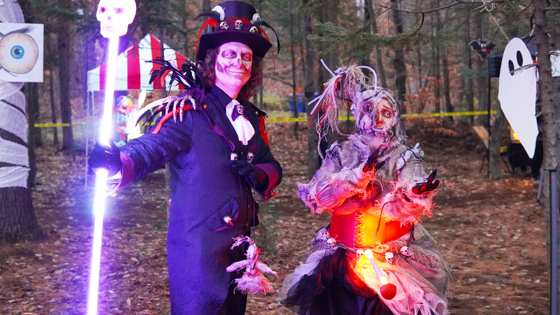 Nés des mystères de la Nouvelle-Orléans, le Baron Lanterne et Delphine Laveau sont liés par une malédiction éternelle. Jadis, la sorcière tenta de s’emparer de la flamme du Baron, gardien des âmes et maître de la lumière des morts. En punition, il emprisonna son âme dans une poupée vaudou. Depuis, ils errent côte à côte — lui, rieur et ténébreux, elle, belle et tourmentée — mêlant magie noire, élégance et théâtre dans une animation envoûtante qui captive le public.