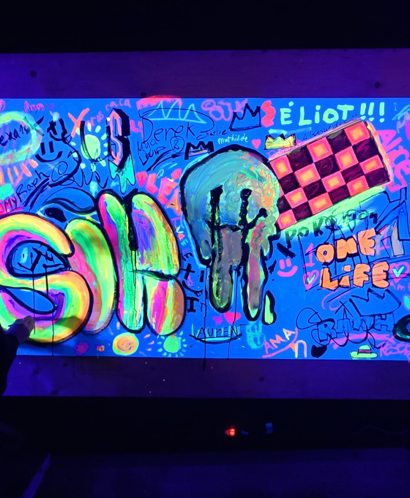 Accueil » Services Artistiques » Oeuvre collective UV réactive