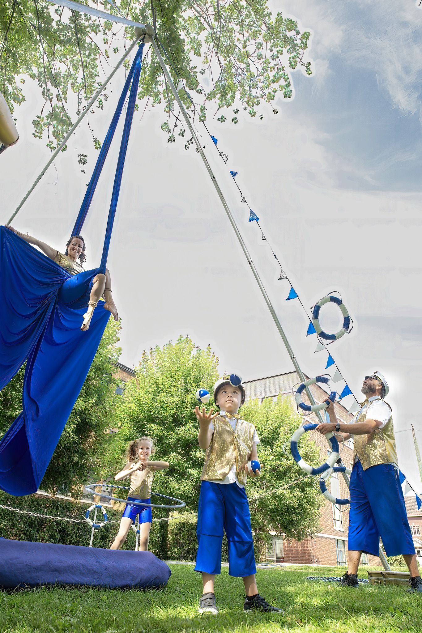Un petit cirque en famille: le capitaine, sa matelot, leurs deux moussaillons et leur petit chien Pirouette présenteront des performances de cirque (jonglerie et tissu aérien).
