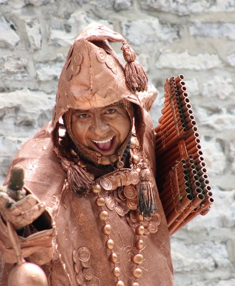 Cette statue vivante de bronze, à la fois sympathique et impressionnante, incarne Papacho, un personnage ancestral du Pérou.