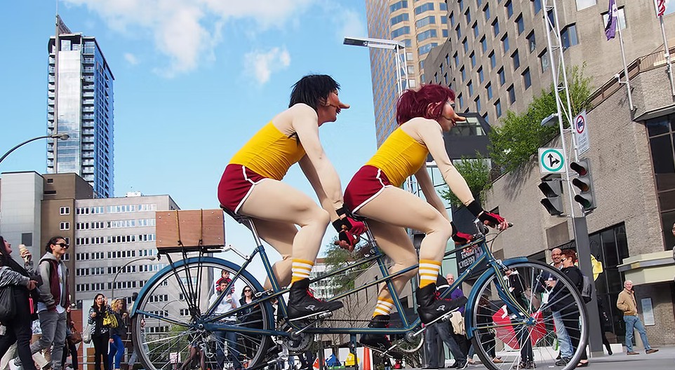 Un événement pour la fête de la Saint-Jean-Baptiste mémorable !Découvrez ce duo haut en couleur : un personnage en échasse …